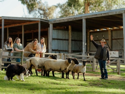 The farm offers gardens, walking trails and entertaining and educational farming presentations daily including Australian sheep shearing, blacksmithing, working dogs, cow milking, and whip cracking.